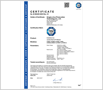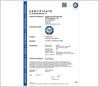 寧波市麗輝光伏科技有限公司成立于2010年,是一家專(zhuān)業(yè)從事太陽(yáng)能光伏接線(xiàn)盒、連接器、光伏線(xiàn)束等周邊產(chǎn)品研發(fā)、設(shè)計(jì)、銷(xiāo)售的企業(yè)。公司座落于中國(guó)杭州灣南岸對(duì)外經(jīng)濟(jì)開(kāi)發(fā)區(qū)的新興城市-慈溪市,產(chǎn)品通過(guò)TUV等認(rèn)證,企業(yè)通過(guò)ISO9001等管理體系認(rèn)證?,F(xiàn)已形成多種系列光伏組件接線(xiàn)盒供應(yīng)能力,目前日產(chǎn)大組件光伏接線(xiàn)盒3萬(wàn)套、小組件光伏接線(xiàn)盒6萬(wàn)套。