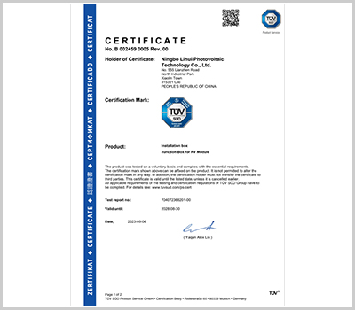 麗輝光伏通過(guò)多年的努力和發(fā)展,秉承以人為本、質(zhì)量?jī)?yōu)先、客戶(hù)至上的生產(chǎn)銷(xiāo)售理念,已經(jīng)形成多種系列光伏接線(xiàn)盒、光伏連接器的專(zhuān)業(yè)生產(chǎn)制造商,我們產(chǎn)品具備:品種多、設(shè)計(jì)新穎、市場(chǎng)覆蓋區(qū)域性廣等特征,產(chǎn)品備受廣大客戶(hù)所青睞,目前本公司產(chǎn)品主要銷(xiāo)往中國(guó)各地、德國(guó)、意大利、瑞士、西班牙、墨西哥、泰國(guó)、越南、印度、土耳其、澳大利亞等國(guó)家和地區(qū)。麗輝光伏結(jié)合10多年連接器生產(chǎn)管理的經(jīng)驗(yàn),企業(yè)通過(guò)了ISO9001等體系認(rèn)證,同時(shí)我們擁有標(biāo)準(zhǔn)現(xiàn)代化廠(chǎng)房,并配備各種自動(dòng)化生產(chǎn)設(shè)備、先進(jìn)檢測(cè)設(shè)備,依托多個(gè)知名的認(rèn)證服務(wù)商,產(chǎn)品通過(guò)TUV等認(rèn)證,目前我們接線(xiàn)盒日產(chǎn)量達(dá)到9萬(wàn)套。我們將會(huì)站在市場(chǎng)需求的前沿,為太陽(yáng)能光伏事業(yè)、為綠色可再生能源、為減少碳排放而不斷地努力!